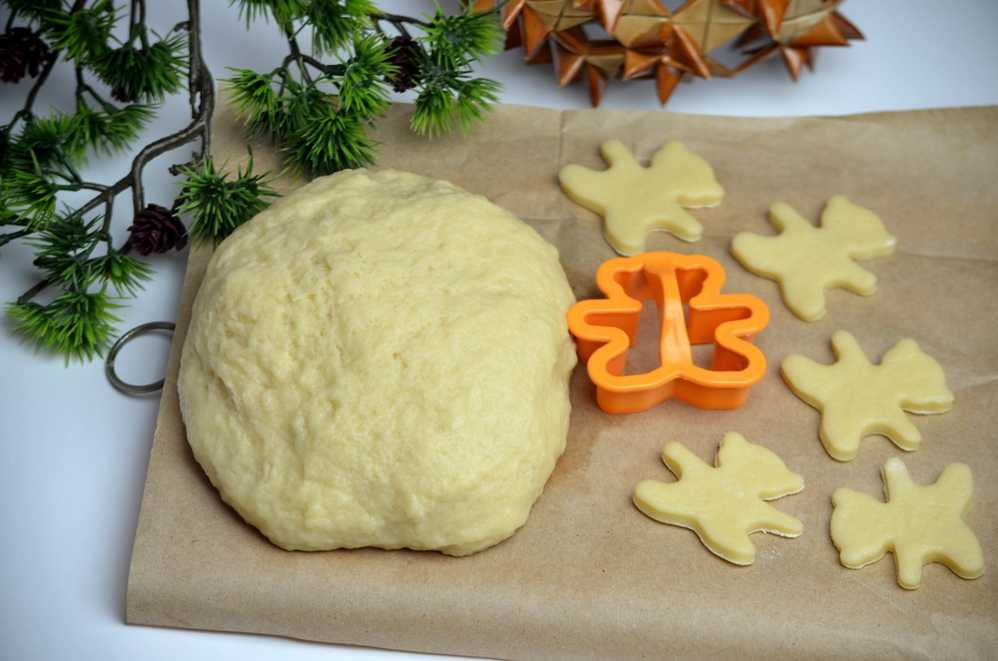 - Раскатать пласт 2 см толщиной, вырезать любыми формочками печенье.
