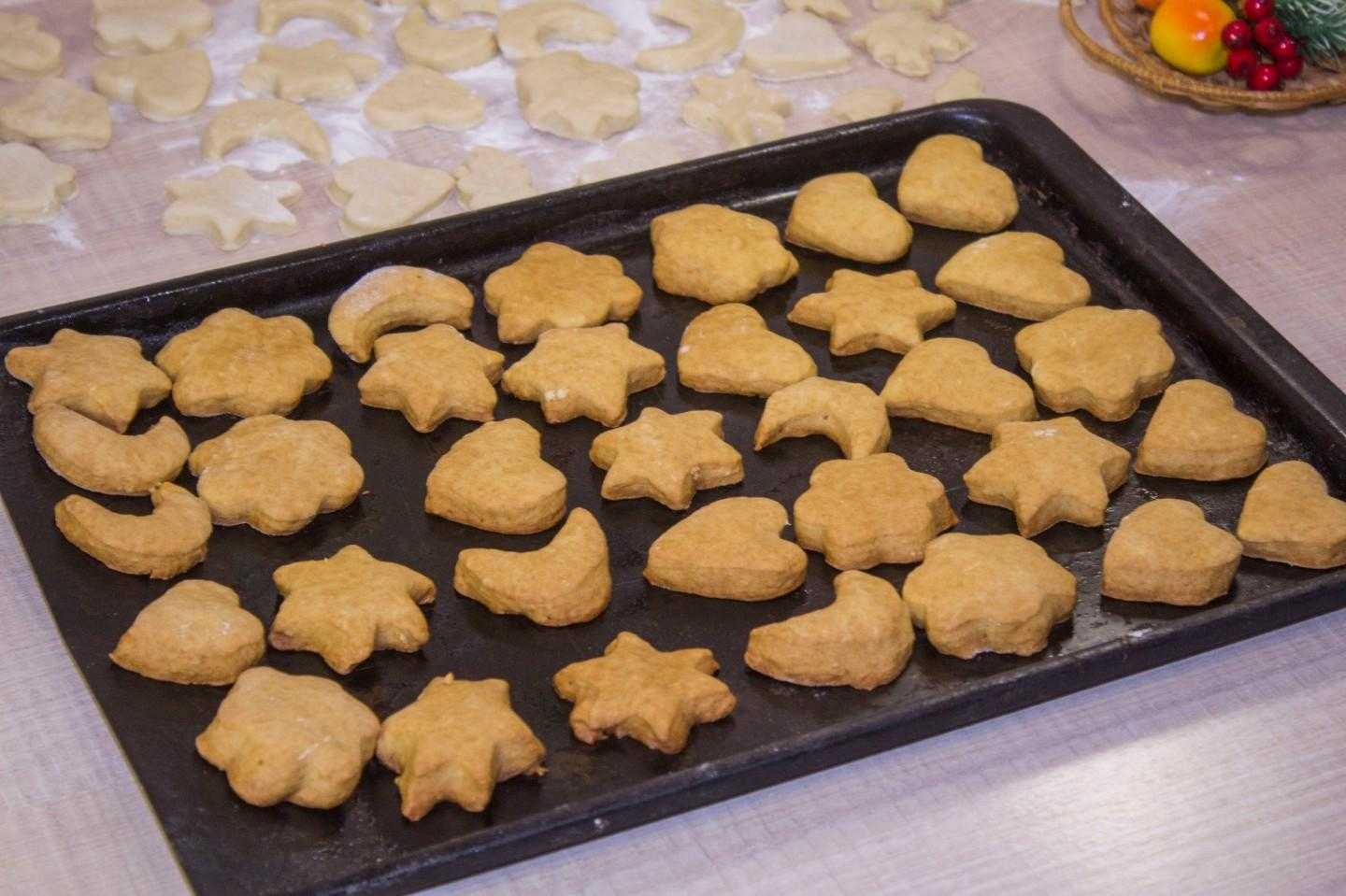 - Из раскатанного на столе пласта вырезать печеньки любой формы.