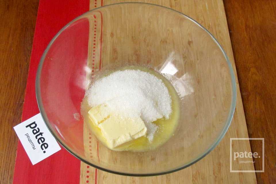 Делаем тесто: размягченное масло взбиваем с сахаром и ванильным сахаром.