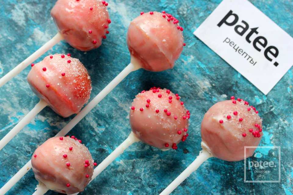 Кейк попсы “Красный бархат” вкусные и нарядные, мини-тортики на палочке в таком варианте станут прекрасным десертом на День влюблённых.