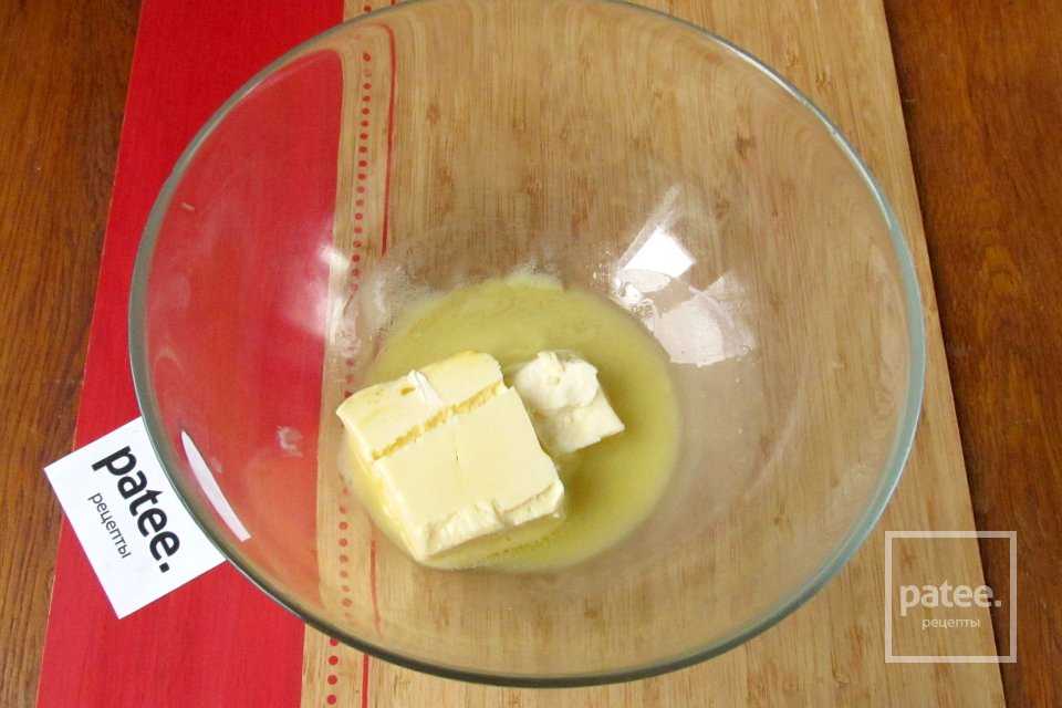 В миску перекладываем сливочное масло и в микроволновой печи слегка его подтапливаем.