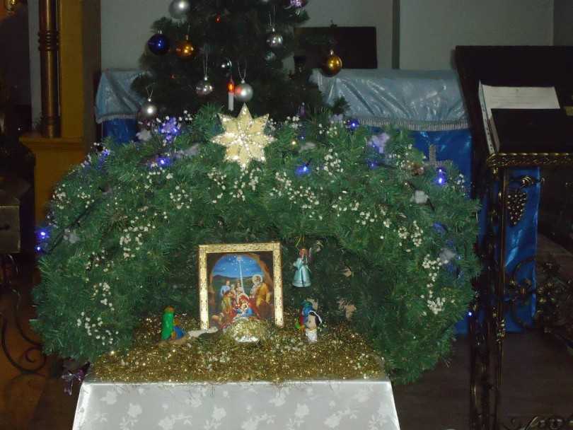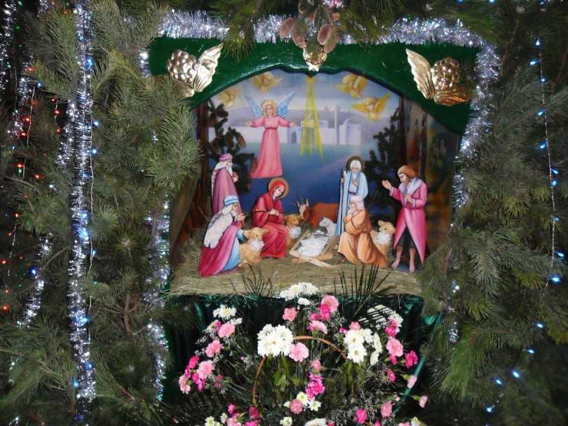 На сцену устанавливается вертеп, в него помещаются ясли, фигурки Пресвятой Богоматери, Ее супруга Иосифа. Рядом располагаются фигурки животных, которые согревали новорожденного Богомладенца своим дыханием. Здесь же ставятся фигуры пастухов и волхвов, пришедших к Нему с Дарами.