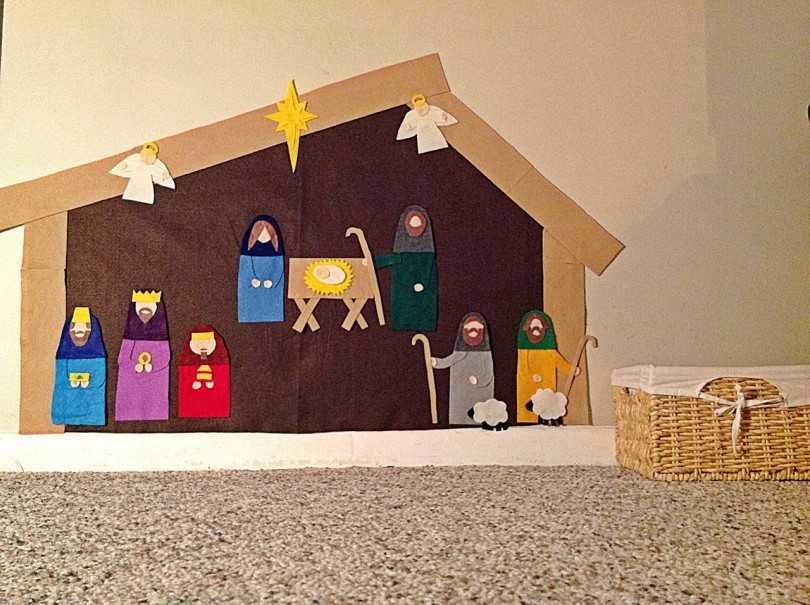Рождественский вертеп — непростое украшение. Он символизирует дух Рождества, его таинство и ежегодное чудо, которое мы передаем своим детям. Красивые варианты вертепов получаются из цветной бумаги и картона. Также можно использовать шаблоны из бумаги, вырезать фигурки, а затем разрисовать их вместе с ребенком. Обычная коробка послужит Вифлеемской пещерой, в которой следует обустроить креативный домашний вертеп. А если прикрепить к бумажным фигуркам цветные карандаши, то можно разыграть библейскую сценку вместе с ребенком.