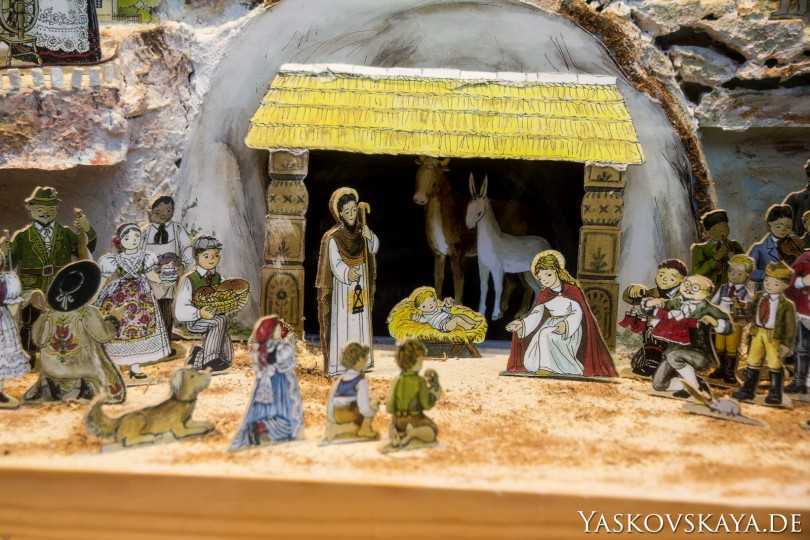 Его история как бы оживает в детском сознании.А домочадцы, решившие устроить вертеп у себя дома, поступят очень мудро. Символика двухъярусной пещеры неизменна: рай расположен вверху, ад внизу. Фигурки семьи Иисуса находятся на верхнем ярусе с левой стороны.