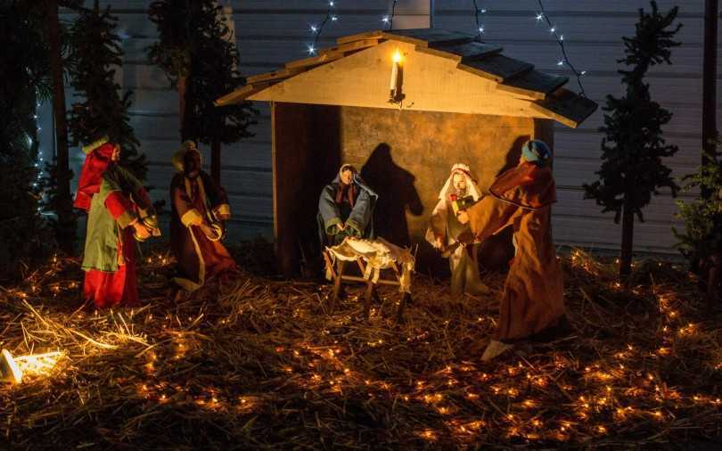 Отдельное внимание уделите украшению вертепа. Можно поставить перед ним цветы в горшках