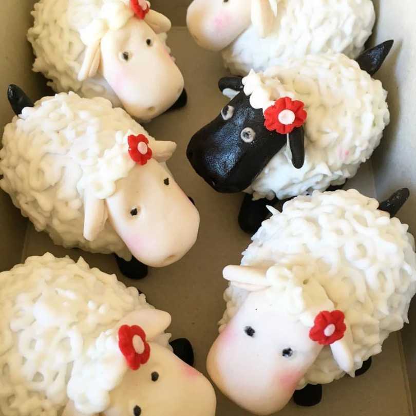 Из белой пряжи сматываем клубок — туловище барашка. Крепим с помощью зубочистки к туловищу головку — белое яичко. Вставляем ножки-зубочистки. Приклеиваем к головке чёлку из пряжи. Рисуем глазки. Барашек готов.