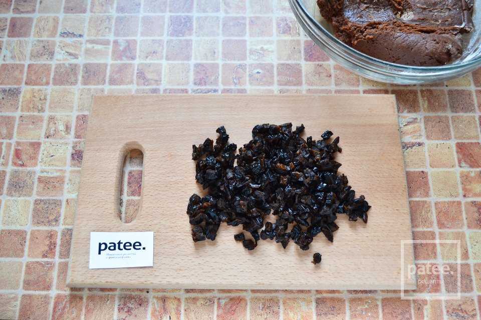Чернослив вымойте, обсушите, нарежьте на мелкие кусочки. По желанию и вкусу можно взять другие добавки, например вяленую клюкву или вишню.