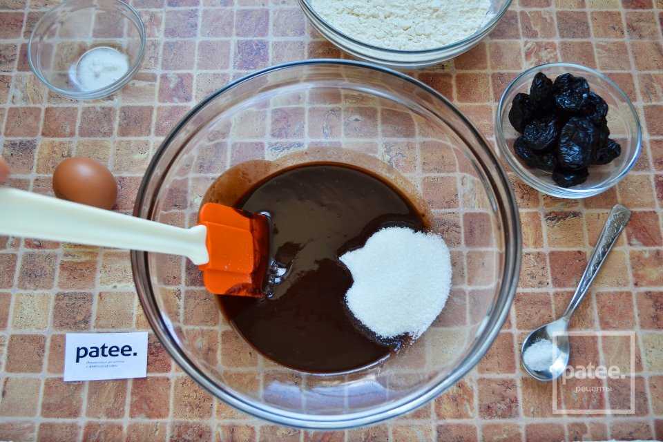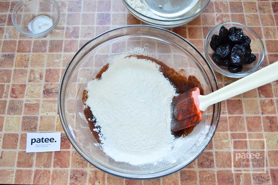 Всыпать нарезанный чернослив к тесту, все окончательно перемешать.
