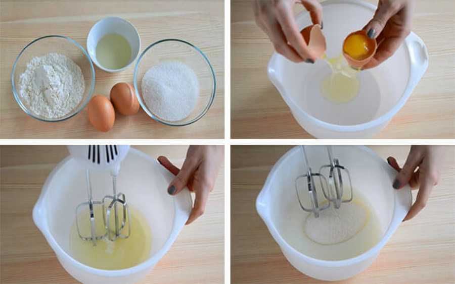 Ингредиенты: мука (130 грамм), сахар (50 грамм), ванилин (0,5 чайной ложки, или пакетик ванильного сахара), соль, корица, мускатный орех, растительное масло (можно кукурузное и рапсовое), белки ( 3 штуки).