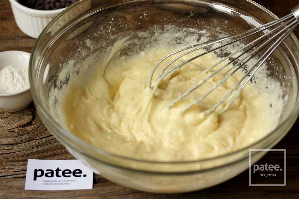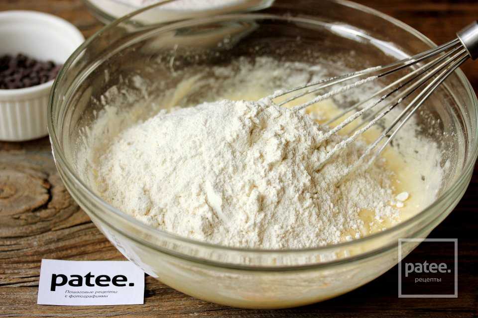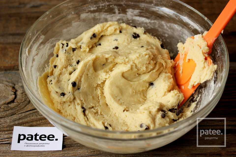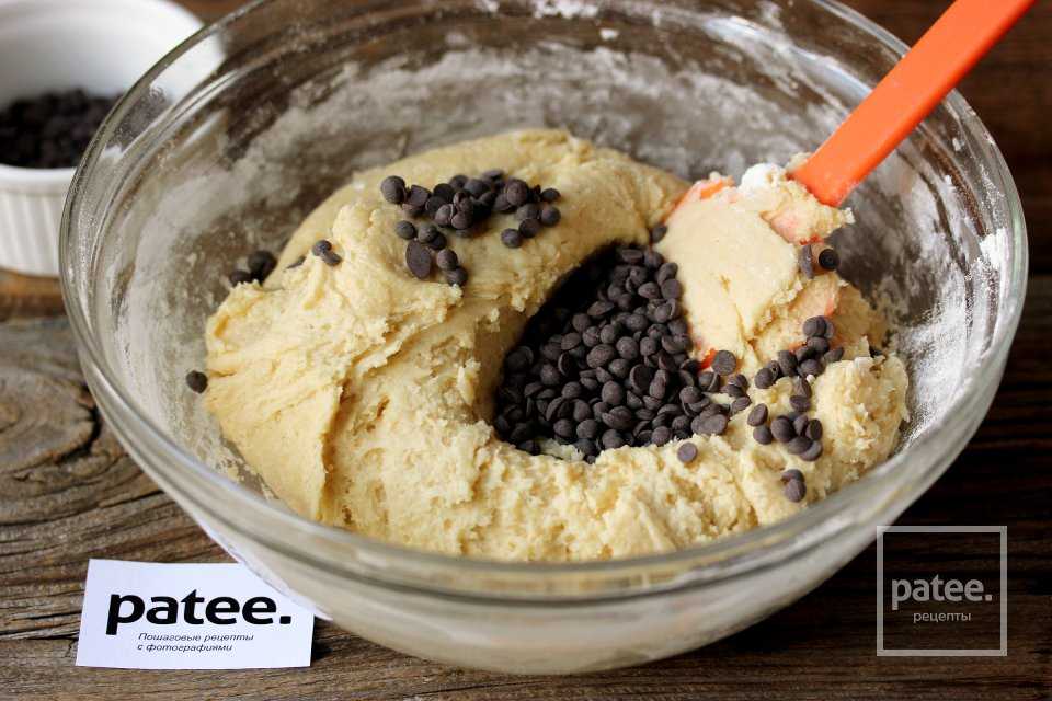 Вмешиваем силиконовой лопаткой шоколадные капли в тесто.