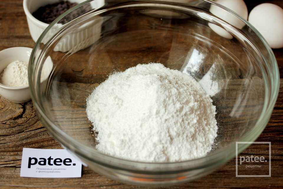 - Муку просеять, перемешать с разрыхлителем.