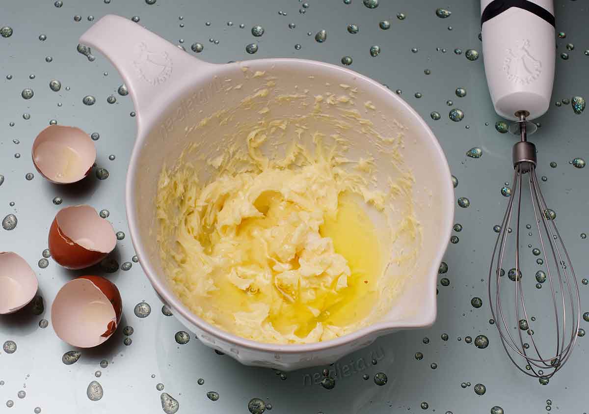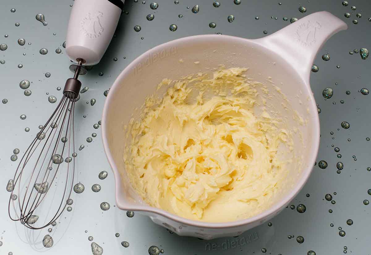 - Сливочное масло комнатной температуры взбейте с сахаром до образования пышной массы.