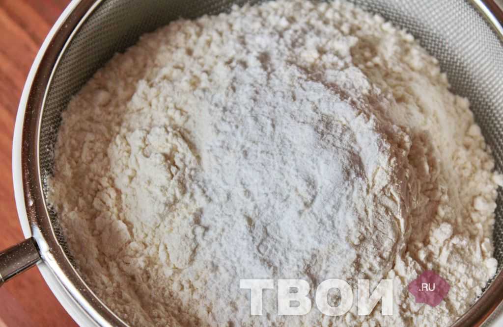 Муку просеять с разрыхлителем и щепоткой соли.