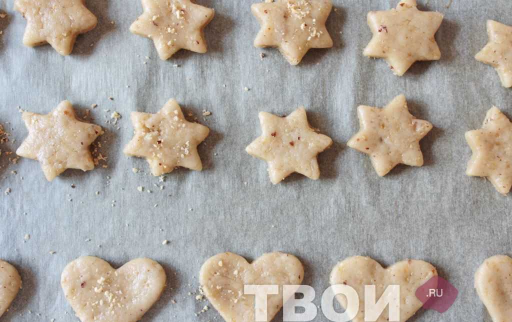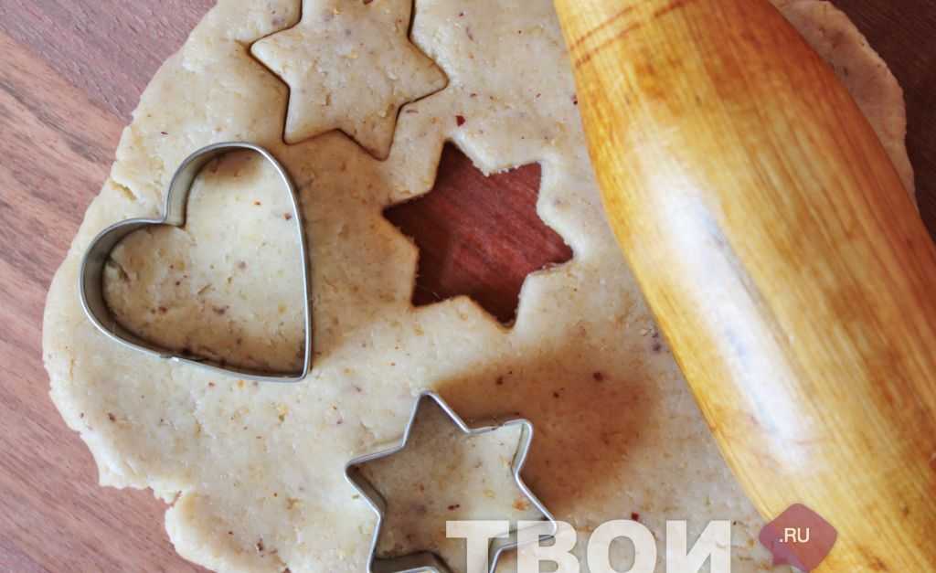 Из охлажденного теста раскатать пласт толщиной 0,5-0,7 см. Кондитерскими вырубками вырезать печенье.