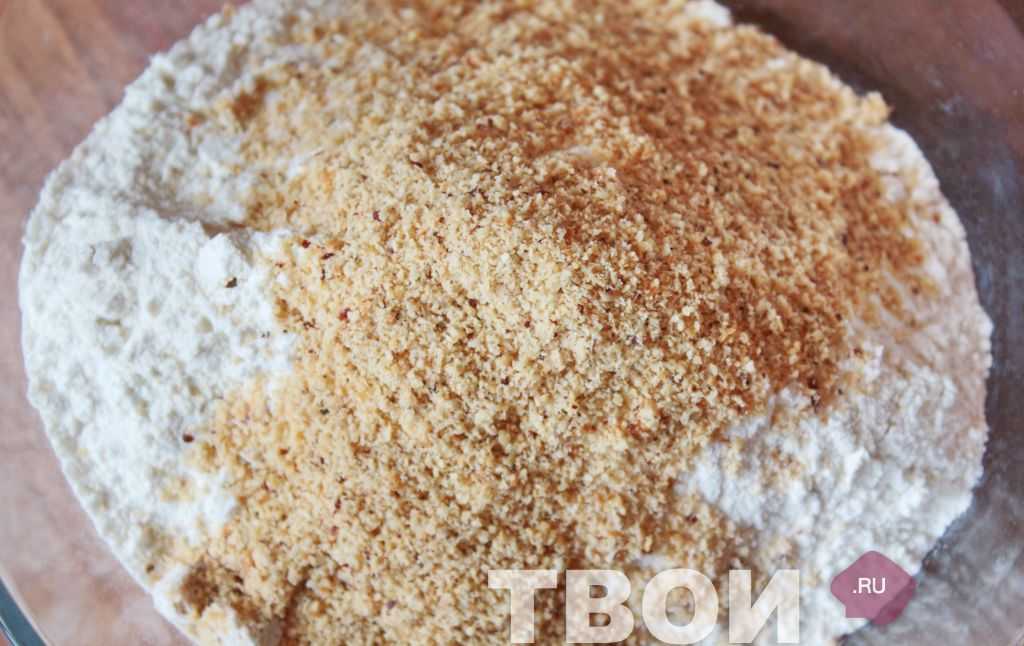 Смешать просеянную муку с крошкой фундука.