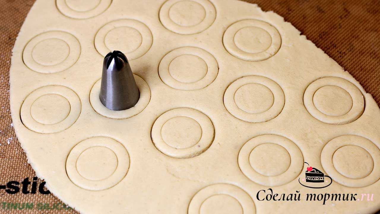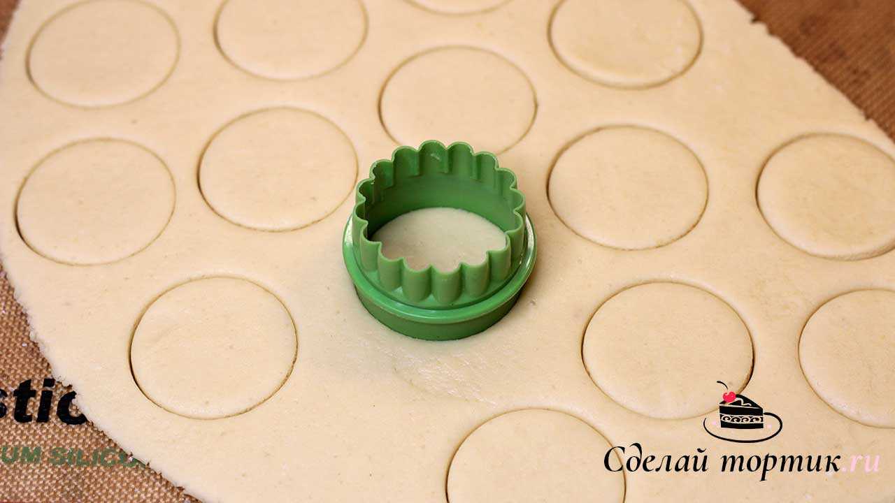- По истечении времени тесто следует раскатать в пласт толщиной 0,7 мм, и удобным способом вырезать из него кружки в виде пуговиц.