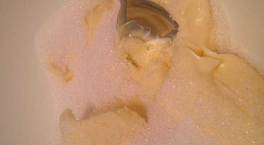 3. Сливочное масло, которое нужно предварительно размягчить, взбейте с сахаром до образования нежной пышной кремовой массы.