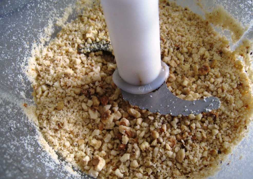 2. Возьмите обжаренные орешки и измельчите их в чаше блендера либо порубите их ножом на мелкие кусочки.