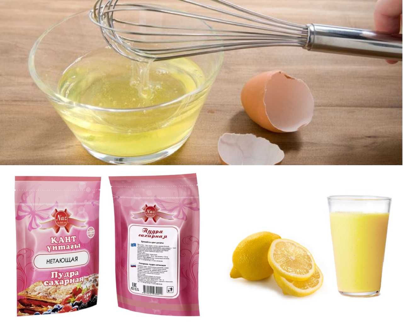 Сначала нужно тщательно взбить белок, затем добавить к нему лимонный сок и сахарную пудру, просеянную через сито