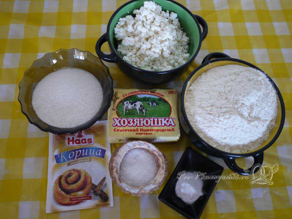 Подготовим ингредиенты. В качестве основного продукта можно взять любой творог, корме соленого в сливках, чем выше его жирность и влажность, тем больше потребуется муки для теста, а следовательно, итоговый продукт станет более калорийным.