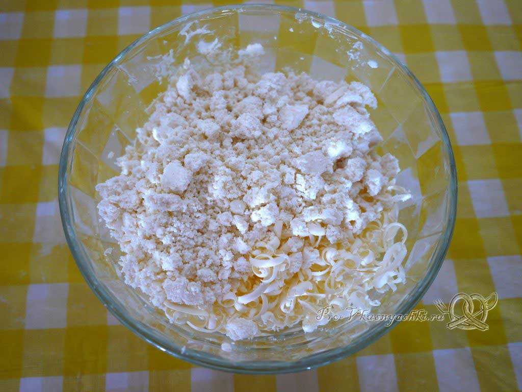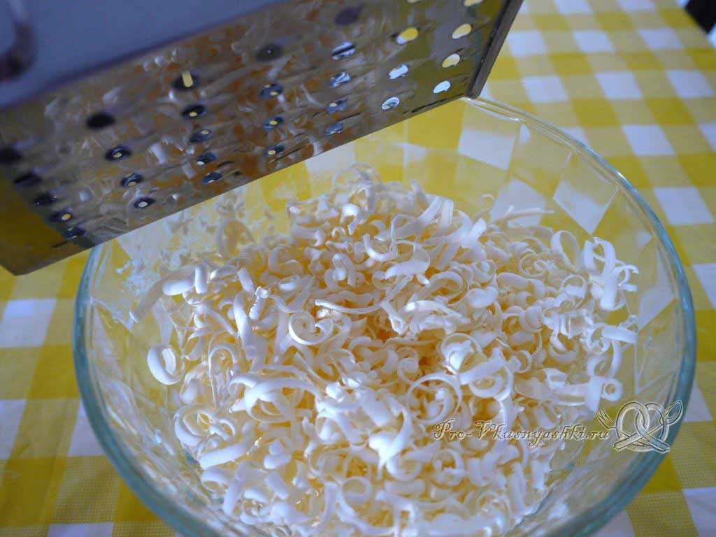 Итак, начнем приготовление. Замороженный маргарин или сливочное масло (200 г) натираем на крупной терке в миску.