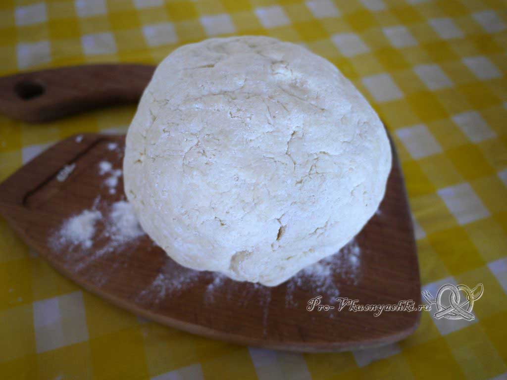 Вымешивать его необходимо руками, при этом он не должен прилипать к ладоням. Чтобы этого избежать, можно посыпать руки и рабочую поверхность мукой. Если же, напротив, тесто получится слишком сухим по виду и потеряет свою эластичность, нужно добавить к нему немного топлённого сливочного масла.