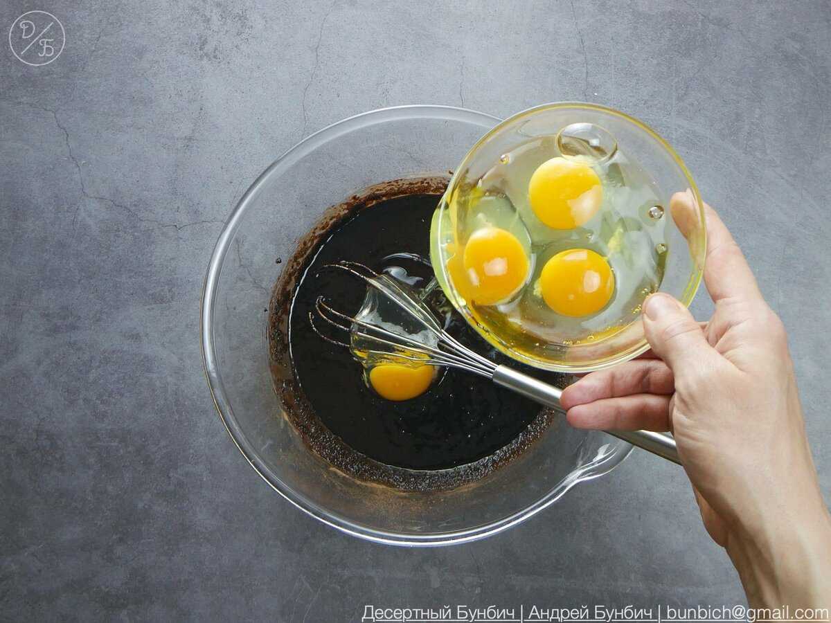 По очереди добавляю яйца и каждый раз перемешиваю до однородности.