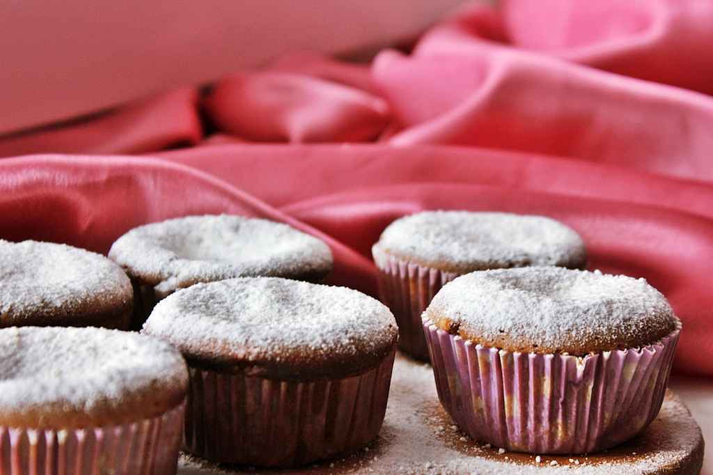 - Отправляем маффины в разогретую духовку и выпекаем их около 20 минут. Температуру духовки выставляйте от 180 до 190 градусов. Готовую выпечку присыпаем сахарной пудрой и подаем с чаем, кофе или какао.