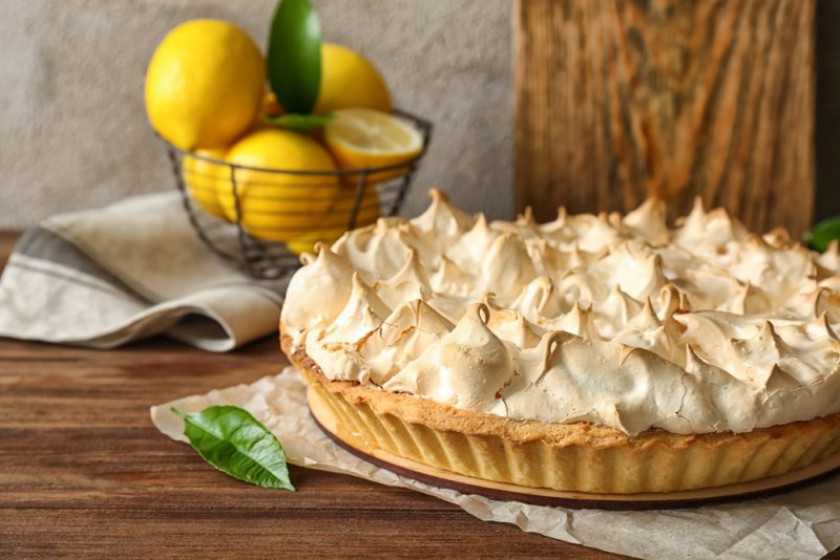 Знаменитый лимонный пирог тоже готовится с безе. Десерт очень вкусный, ароматный, а также выглядит оригинально. С его помощью удастся удивить гостей.