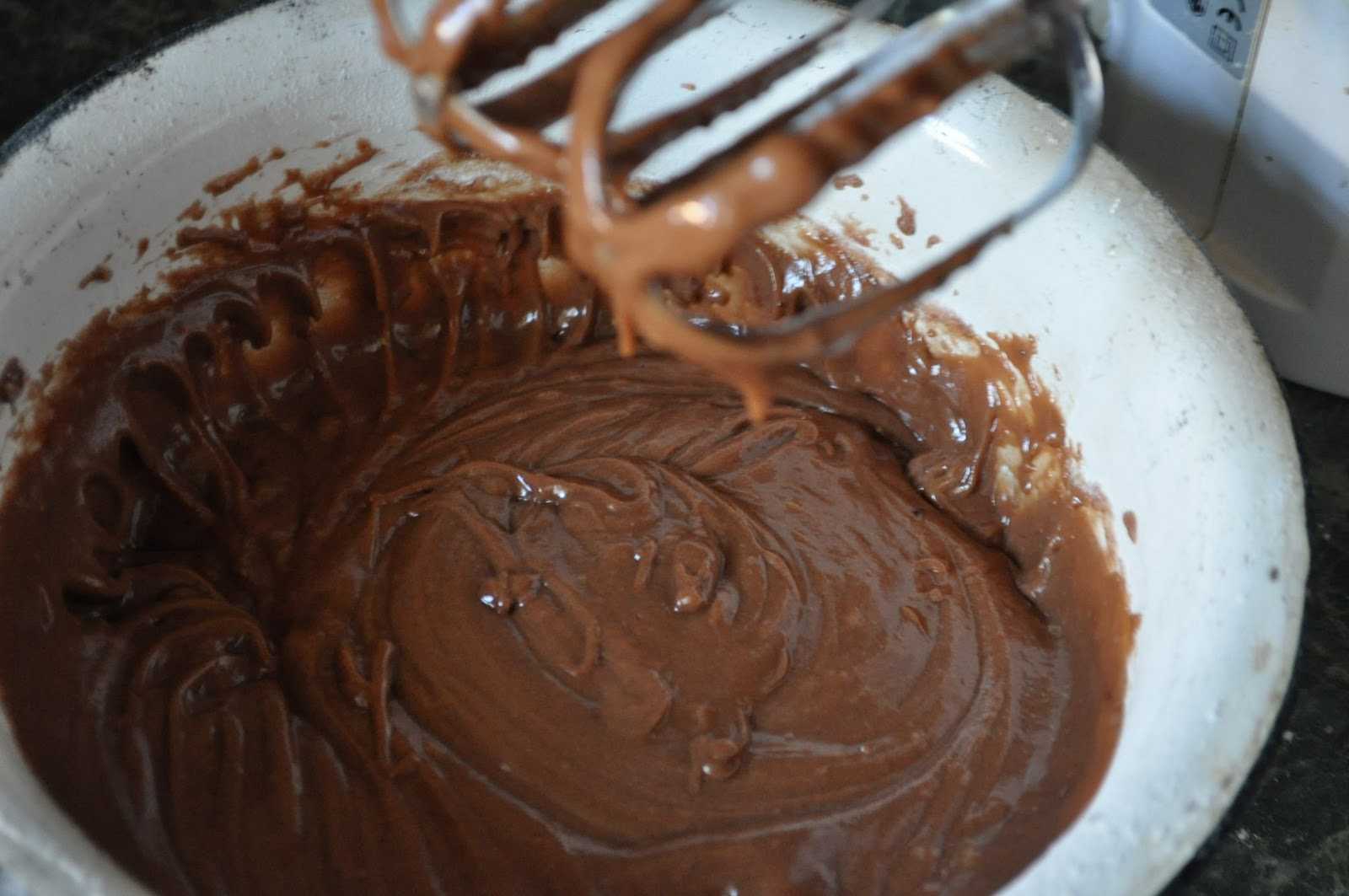 Сливочное масло необходимо взбить с солью и сахаром. Добавить к нему куриные яйца и перемешать. Всыпать смешанную с разрыхлителем муку. Всё перемешать и влить молоко. Перемешивать лучше венчиком. Тесто разделить на две миски. В одну из которых добавить растопленный черный шоколад. Всё хорошо размешать до однородности. Шоколад лучше растапливать на водяной бане или в микроволновке.