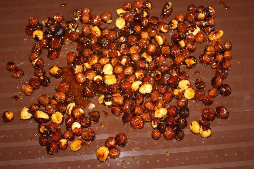 Если вы приобрели уже очищенный и обжаренный фундук, то пропустите вышеописанную процедуру. Если фундук без кожицы, но сырой, обжарьте его на сковороде (5 минут) или в духовке (6-7 минут при 180 градусах, около 10 минут при 150 градусах). Для нашего кулинарного изыска нужны именно обжаренные ядра, у них более насыщенный вкус.