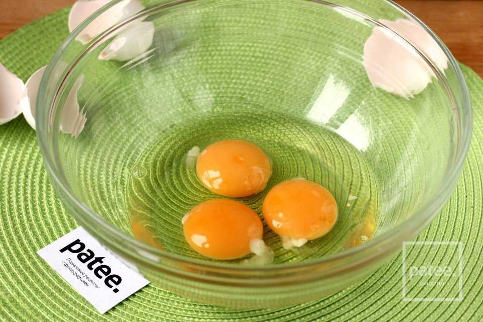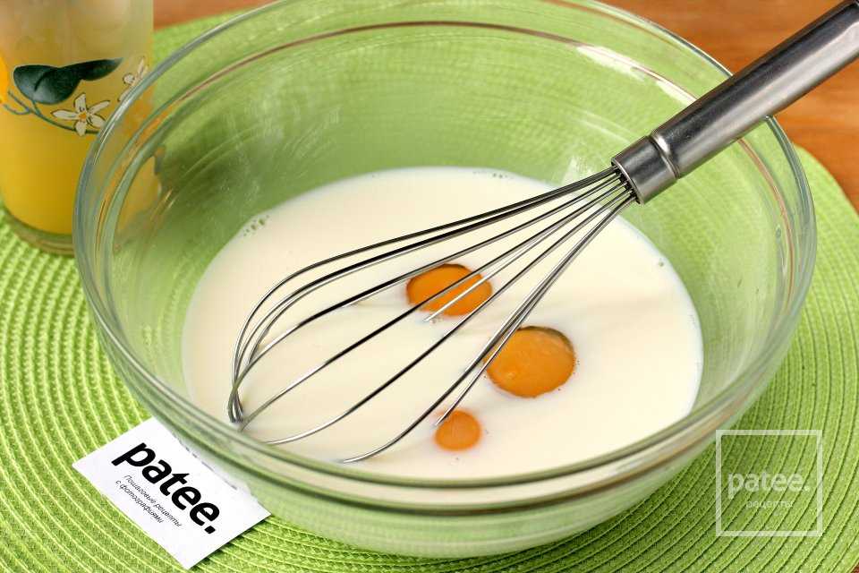 - Сначала смешайте яйца, кефир и соль. К этой смеси добавьте мягкое сливочное масло.