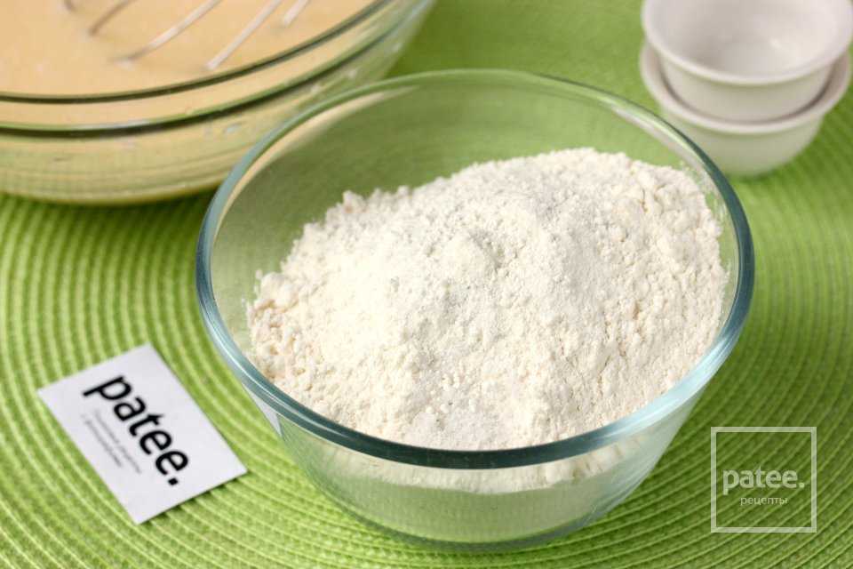 - Отдельно смешайте муку, разрыхлитель с сахаром.