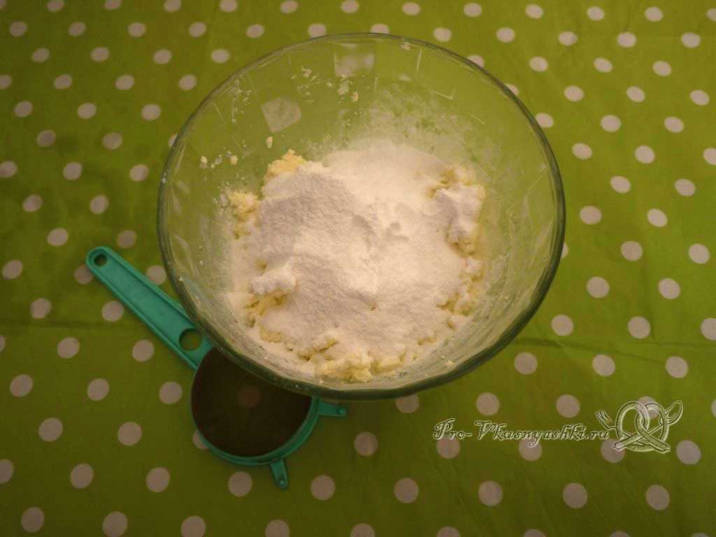 - Всыпаем 75 г сахарной пудры и 8 г ванильного сахара.
