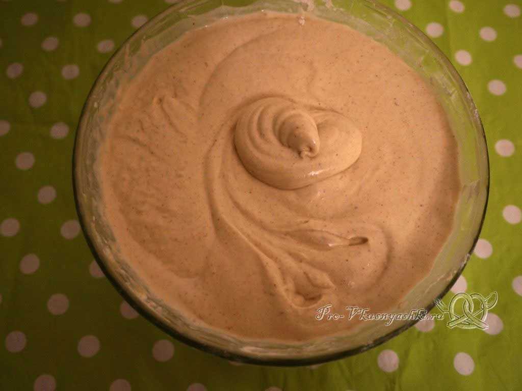 - Тщательно взбить крем. В процессе его количество должно увеличиться примерно в 2 раза.
