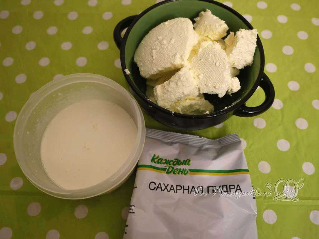 Подготовим ингредиенты. Сыр маскарпоне и жирные сливки убираем в холодильник до тех пор, пока они нам не понадобятся.