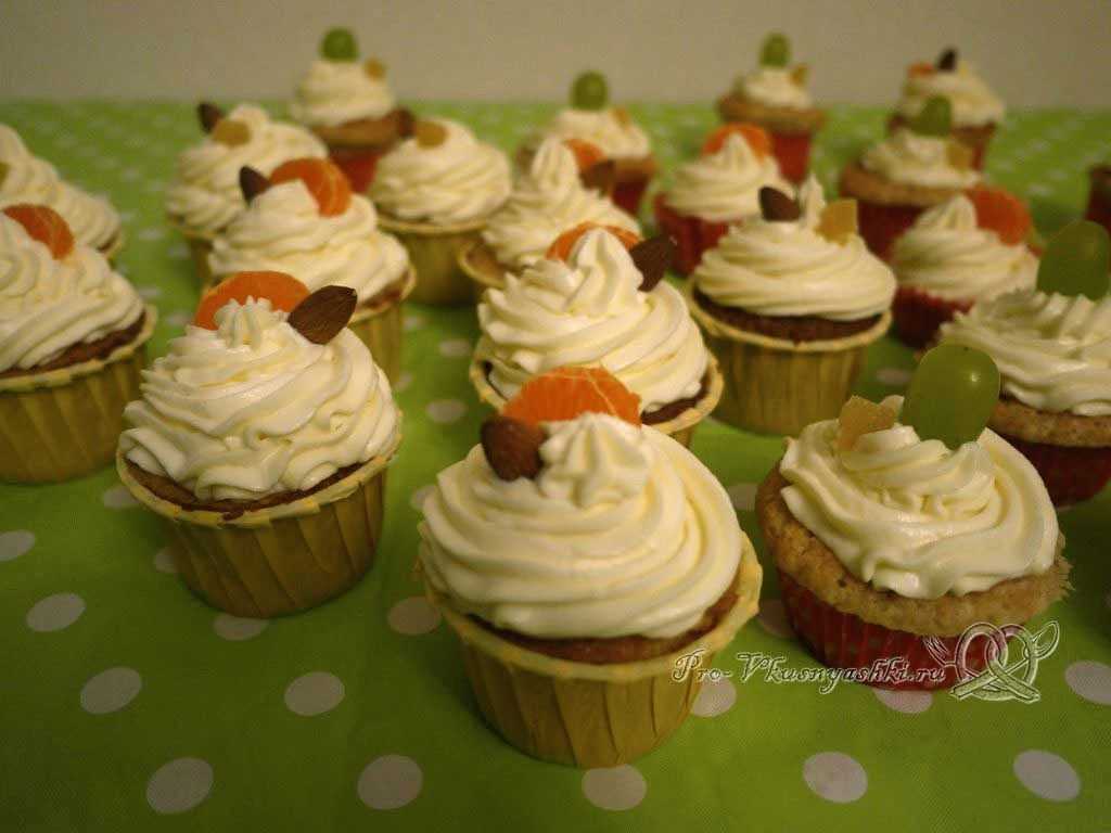 Украшаем все капкейки фруктами и орехами. Теперь можно подавать наш вкуснейший, нежный и просто тающий во рту десерт к столу.
