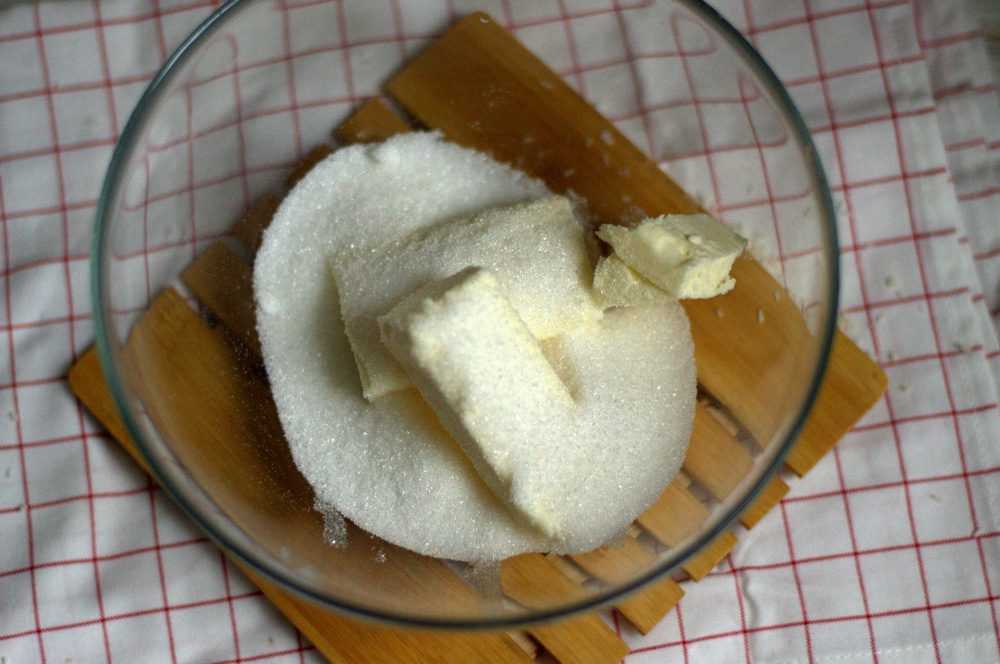 Смешиваем масло и сахар