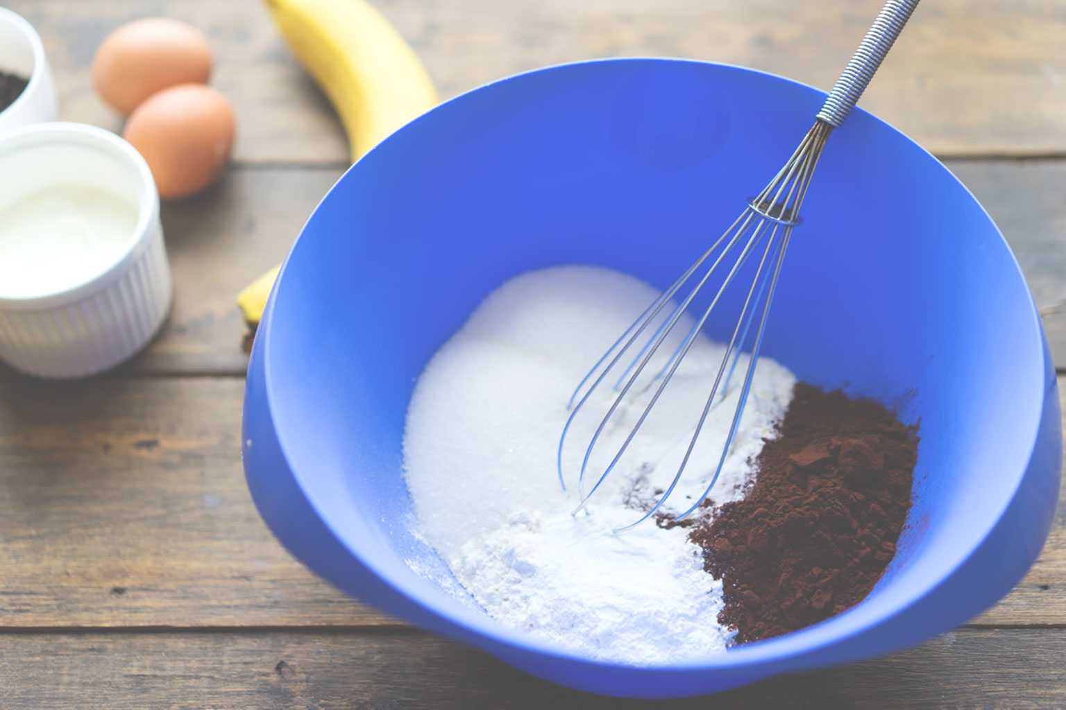 Смешивание ингредиентов для приготовления шоколадных маффинов с бананом