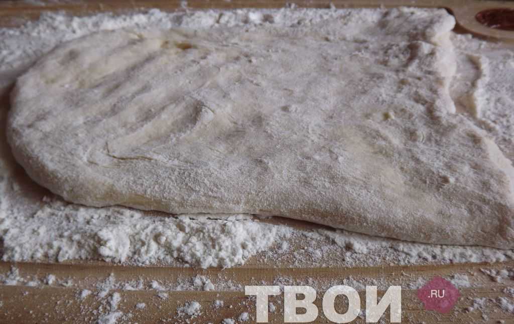Обминаем тесто руками на подпыленной мукой доске.