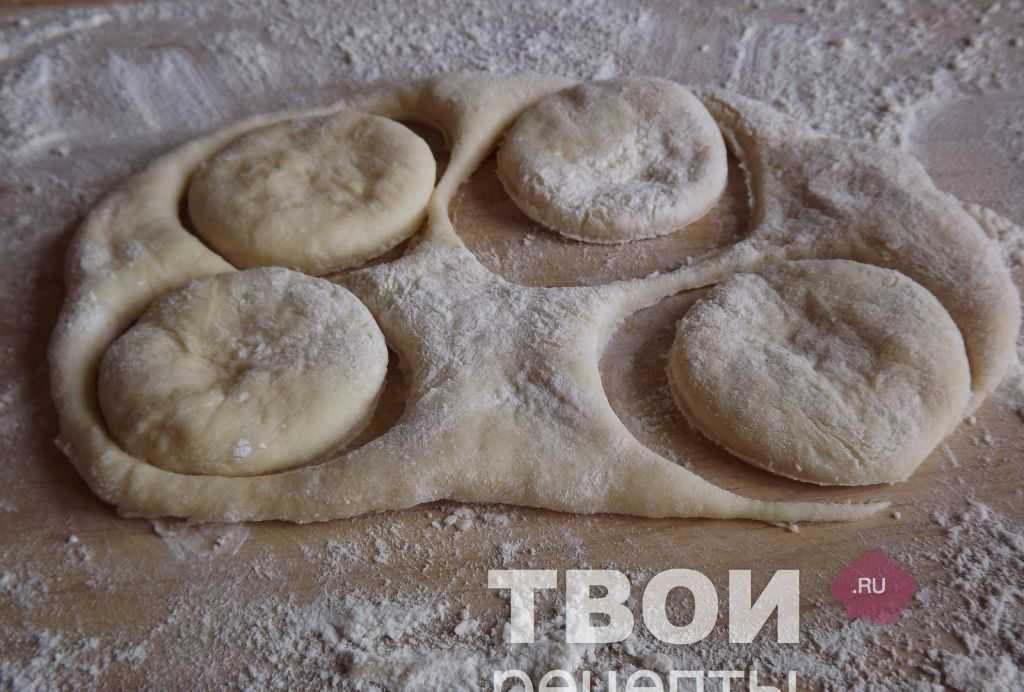 Затем нужно разделить его на две части. Одну убрать под пленку, чтобы не подсыхало. А со второй частью начнем работать. Раскатываем ее в пласт толщиной 0,5-0,7 см. Выдавливаем кружочки с помощью формочки для печенья или стакана. В центре каждого круга вырезаем дырочки насадкой для кондитерского мешка или другой формочкой. Даем заготовкам подойти минут 10 и начинаем жарить.