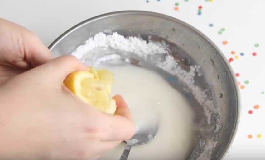 Для приготовления красивой сладкой отделки, нужно смешать сливки или молоко с сахарной пудрой. Добавить ванилин и поставить на слабый огонь, чтобы смесь немного загустела. Снимаем с огня и делим на то количество частей, сколько у нас имеется красителей. Добавляем в каждую порцию пигмент, перемешиваем. Покрываем выпечку яркой смесью, с одной стороны.