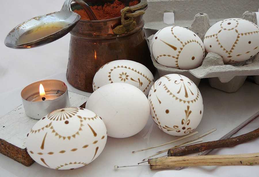 - вареное яйцо с тщательно высушенной поверхностью (либо сырое с удаленным через верхнее и нижнее отверстия содержимым, если продукт планируется не есть, а использовать как сувенир);