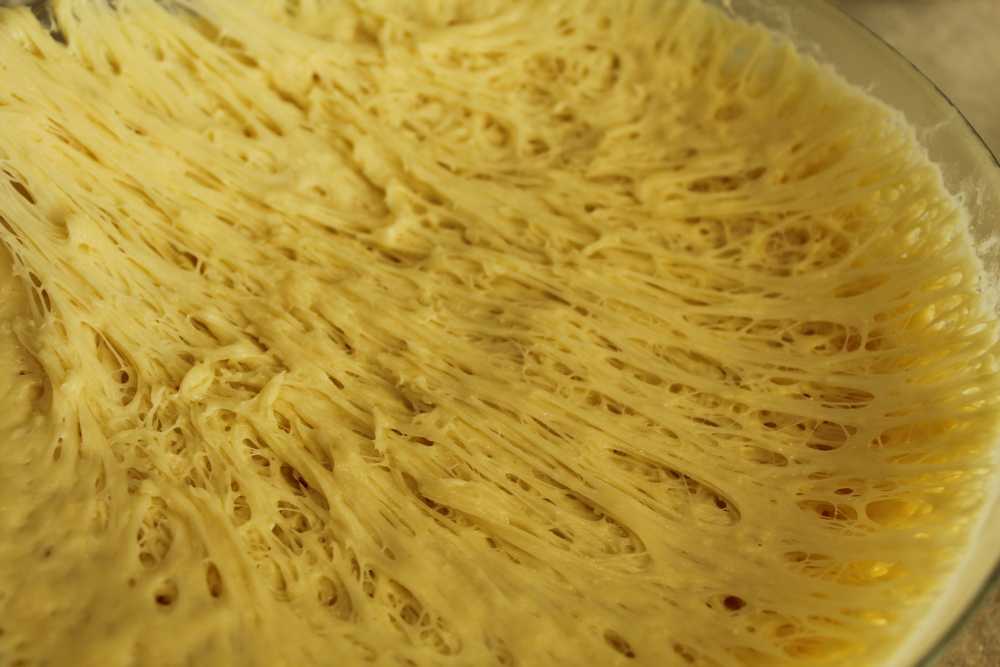 - Оставьте тесто в покое, накрыв его полотенцем, чтобы оно утроилось в объеме, на 12 часов при 27 ° С.