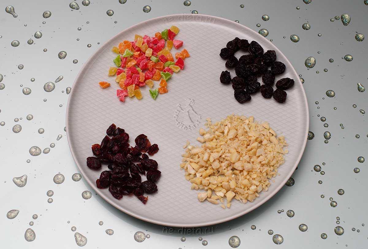 - 100 г орехов, сухофруктов и цукатов