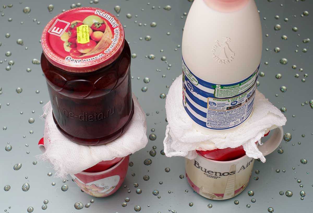 Я использовала стеклянную банку с вареньем и пластиковую бутылку молока.