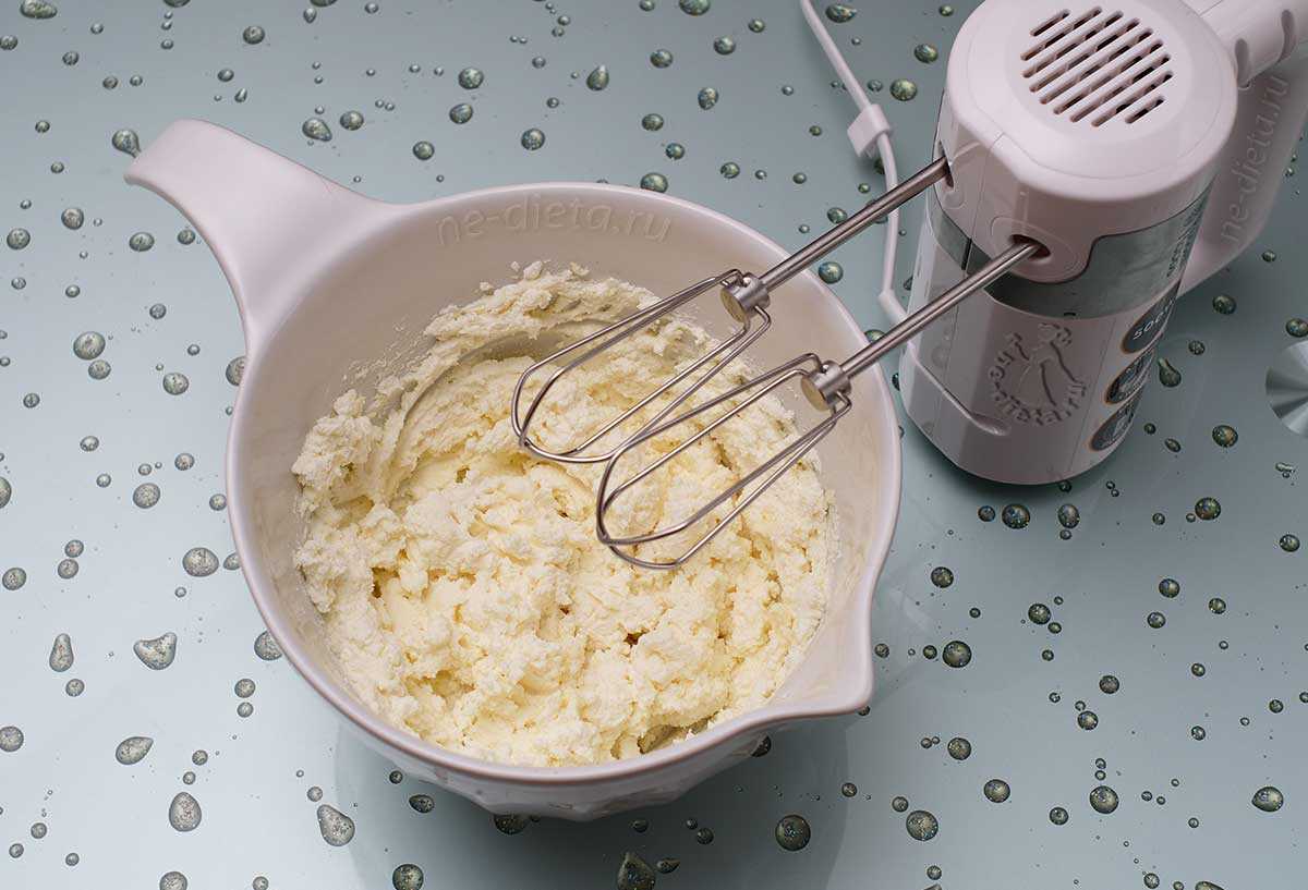 7. С помощью миксера смешать творог с размягченным сливочным маслом.