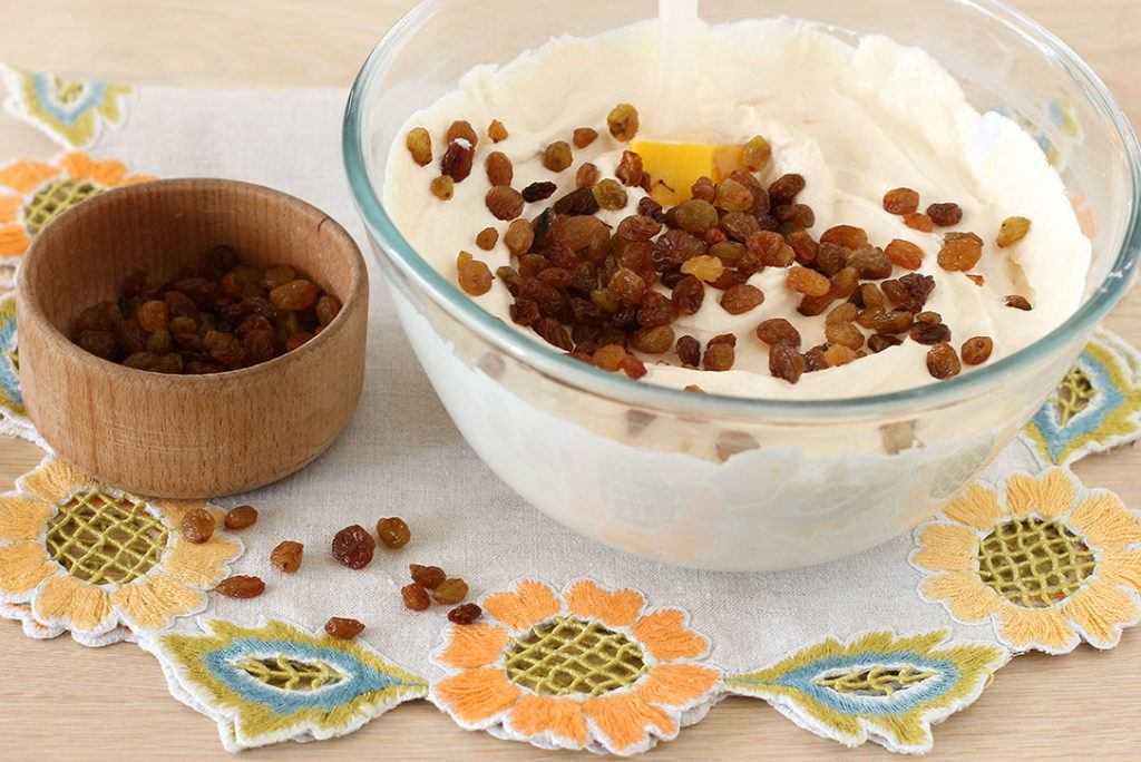 5. Изюм предварительно замачиваем в горячей воде, и когда он размякнет, добавим в основу.