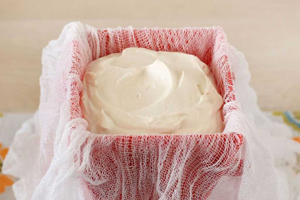 7. Творожную массу, выкладываем в форму, выстланную влажной марлей, ставим сверху груз. Оставляем в холодном месте на несколько часов.