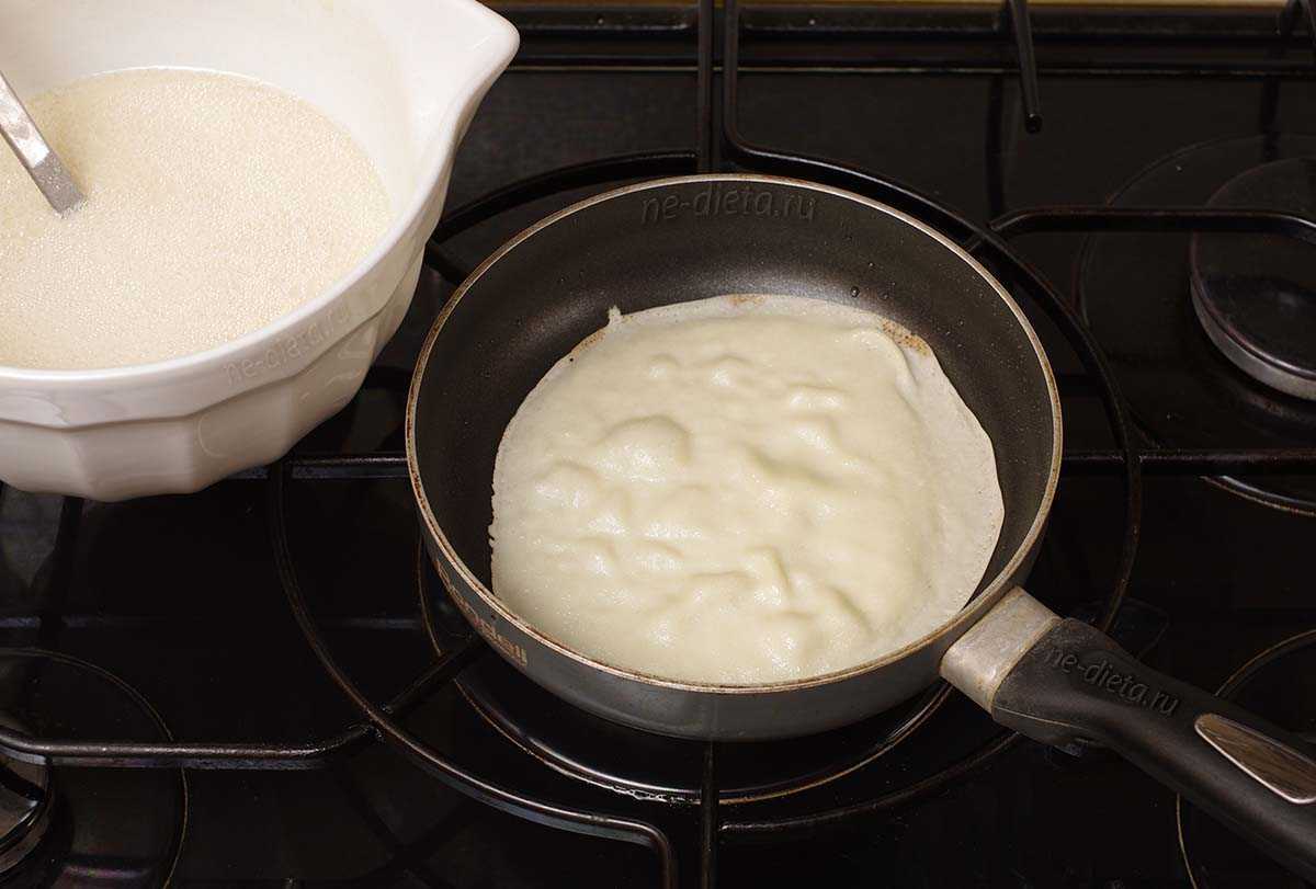 - Обязательно хорошо раскалите сковороду и хорошо смажьте растительным маслом, чтобы даже первый блин не был “комом”.